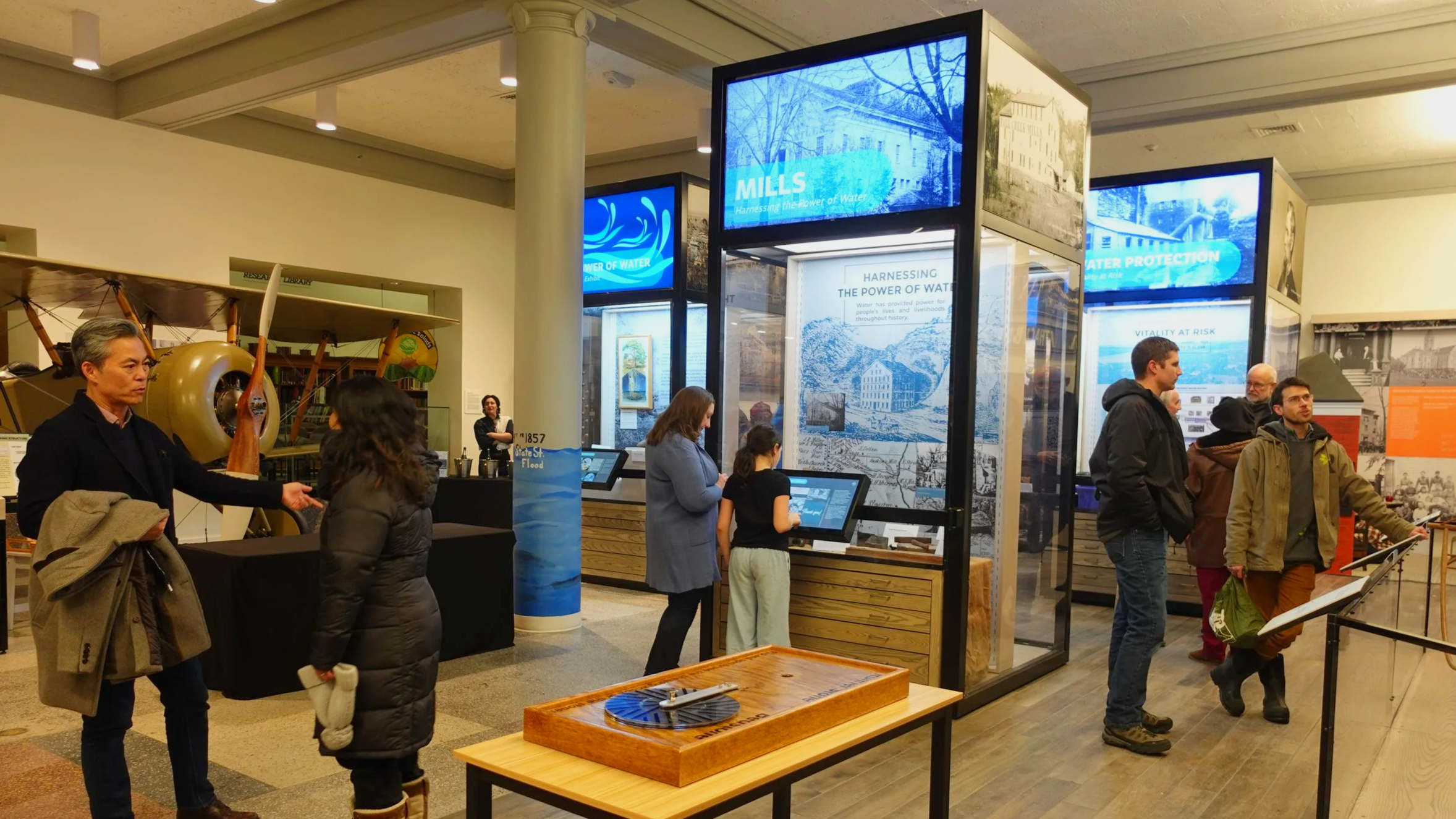“The Power of Water: A Dam Good Exhibit” is currently on display in our centrally located exhibit hall. Explore the history of floods, dams, mills, and more across Tompkins County in this beautiful blue curation of artifacts and archival documents.
